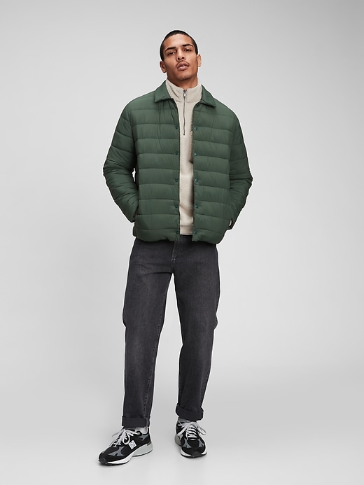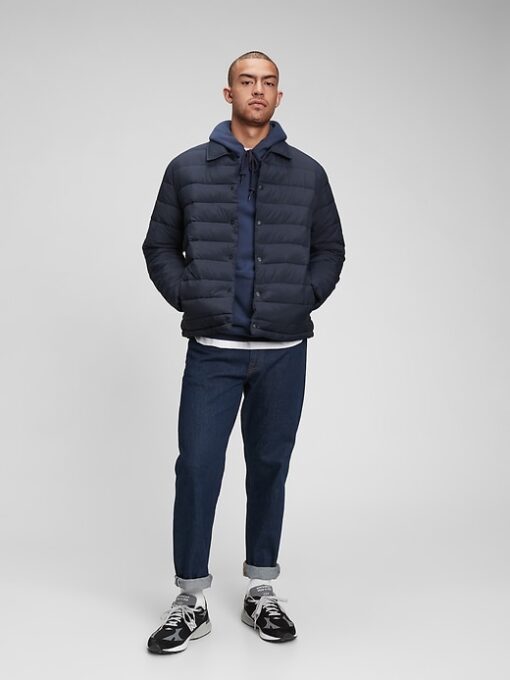 Shop Snap-Front Puffer Jacket: Smooth nylon weave., Long sleeves., Snap-button front closure., Front slant pockets., This product was made in a factory that runs P.A.C.E. (Personal Advancement & Career Enhancement) program. P.A.C.E. is our educational program that helps the women who make our clothes build the skills, knowledge, confidence & resilience needed to advance in work & life.